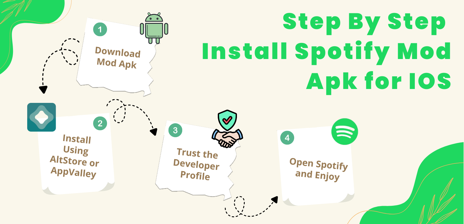 Spotify MOD Apk for IOS latest version takes a few careful steps. You do not need to jailbreak your device, but you will need to use a trusted third-party installer because Apple does not allow direct installation of modified apps.