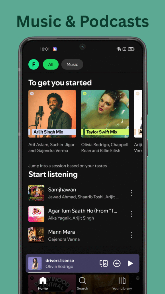 Spotify is not only for music. You can listen to podcasts about business, entertainment, motivation, or news. This makes the app a one-stop platform for all types of audio entertainment. You can follow podcast creators to get updates on their latest episodes.