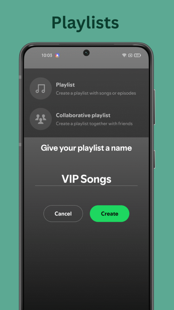 It allows you to create custom playlists based on your mood or taste. You can mix different genres, add unlimited songs, and share your playlist with friends. It helps you to keep all your favorite tracks organized in one place and share them easily on social platforms.